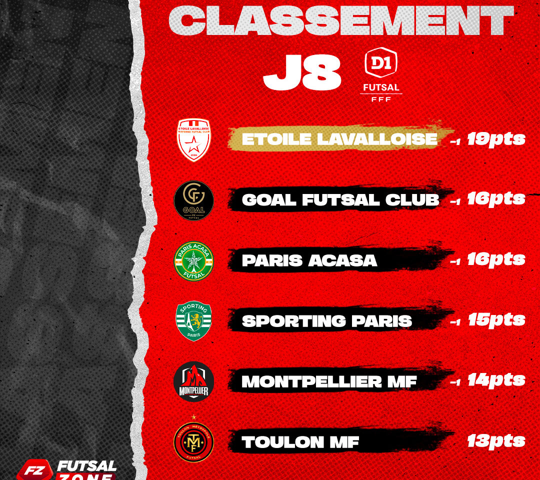 Le classement du championnat de D1 de Futsal après 8 journée