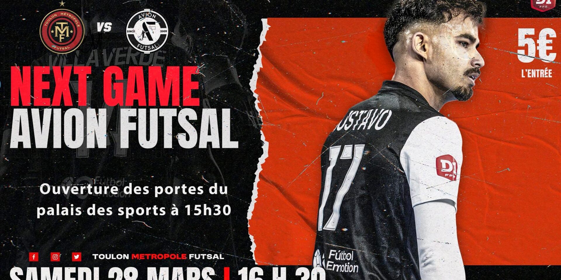 MATCH À DOMICILE Published on: 23 mars 2026 Published in: D1 MATCH À DOMICILE Samedi 28 Mars 16h30 Palais des Sports Toulon Métropole Futsal Avion Futsal Nos joueurs vous attendent nombreux pour ce rendez-vous à domicile Ambiance, intensité et spectacle garantis Entrée 5€ Venez en famille, entre amis et soutenez le TMF ! Post navigation Previous Article Previous Article Coupe Nationale Futsal – Tirage au sort Next Article Next Article EMISSION « TRANSVERSALE » SUR SUNVIBES RADIO Vous aimerez aussi VICTOIRE À L’EXTÉRIEUR ! D1 NEXT GAME – Demi-finale coupe nationale. – TMF vs E.LAVALOISE D1 Leave a comment Annuler la réponse Save my name, email, and website in this browser for the next time I comment.